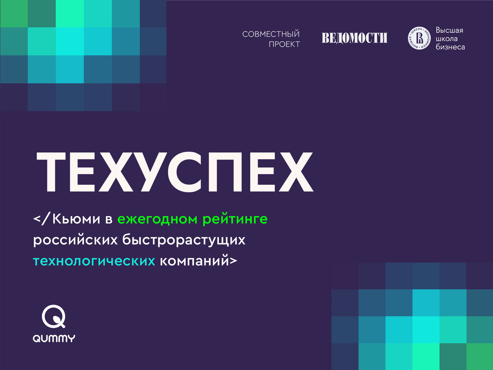 Инициаторами рейтинга выступили деловое издание «Ведомости» и Высшая школа бизнеса НИУ ВШЭ при поддержке компании «Иннопрактика» и Российской венчурной компании. В этом году в финальный список вошли 104 компании из различных отраслей, демонстрирующие высокую динамику роста, технологичность и стратегическую устойчивость. В числе лидеров — и Qummy.